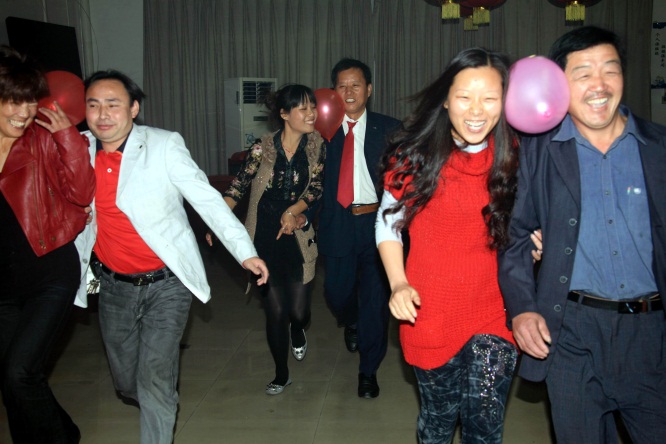 為了活躍我們的現(xiàn)場(chǎng)氣氛,經(jīng)工作人員商量決定,我們臨時(shí)增添了一個(gè)小游戲,這個(gè)游戲名叫雙人頂氣球接力,需要 8名觀眾的配合。
