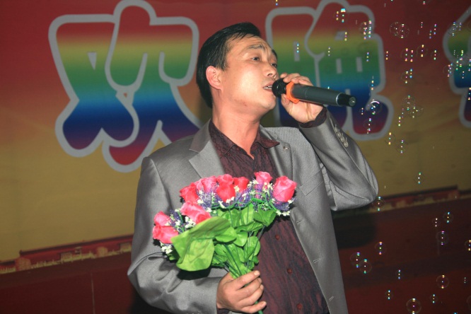 機(jī)電科職工盧庶民在演唱《我愛(ài)你中國(guó)》.