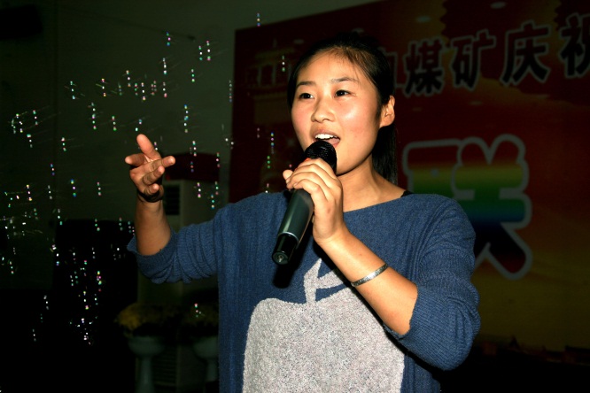 選煤廠職工張艷在演唱《東南西北風(fēng)》.