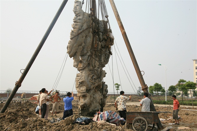 奇石吊裝現(xiàn)場