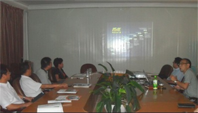 參會人員認真觀看軟件代表蔣新聞經(jīng)理作軟件演示