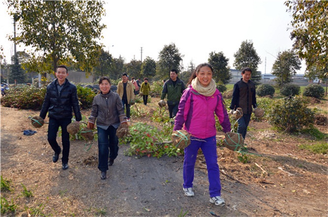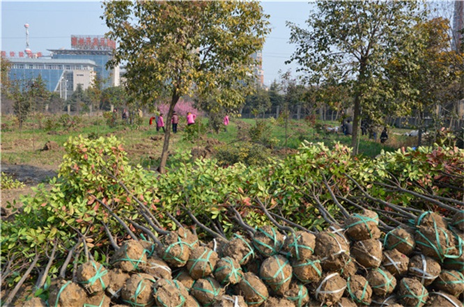 活動中,大家積極踴躍,齊心協(xié)力,分工合作。有的搬運(yùn)樹苗,有的把樹苗放進(jìn)土坑扶直擺正;有的用力掄起鐵鍬,鏟土回填踩實(shí);有的蹲下身體,目測樹苗成行,努力做到每排樹苗橫豎一條線,場面如火如荼。為確保新樹栽種成活率,還有專業(yè)人員在植樹現(xiàn)場進(jìn)行技術(shù)指導(dǎo),確保做到保質(zhì)、保量、保成活。當(dāng)天所種樹種有紅葉石楠、高桿女貞等品種,這些均為本地種植樹種,適宜本地氣候和生長條件。十一日當(dāng)天共植樹近1000棵。