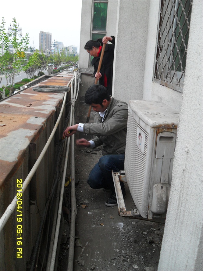 行政處配合女工整理二樓挑檐管線