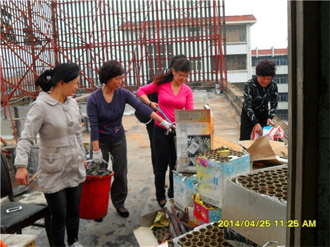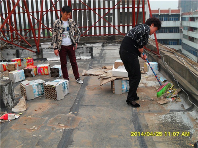 財務(wù)處、行政處員工在清理五樓垃圾