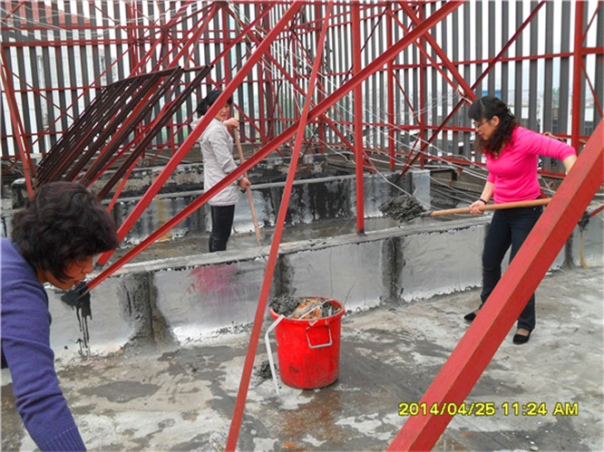 集團公司婦聯(lián)主席何麗娟同志帶領(lǐng)職工在清理樓面淤泥