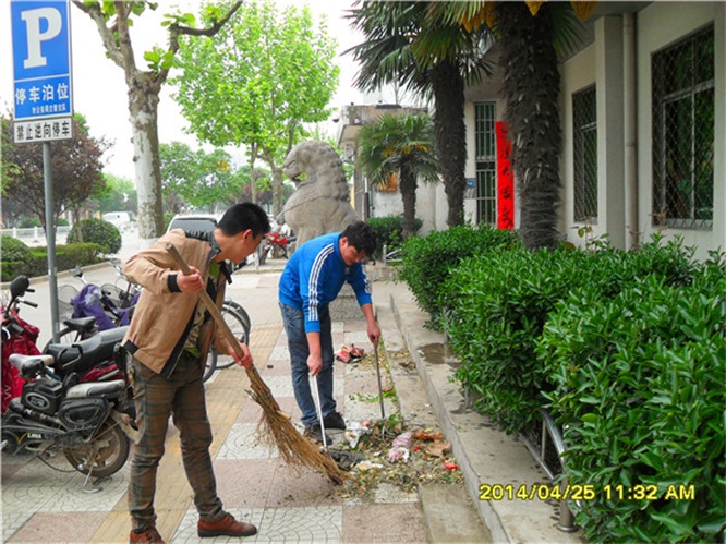 保衛(wèi)處梅小虎、黃彪清掃大門外雜物