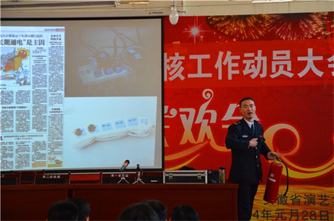 2015年1月7日、8日下午,安徽省消防協(xié)會(huì)下屬愛(ài)民防火服務(wù)中心宣教部郭濤教官到宿州煤電集團(tuán)公司機(jī)關(guān)和界溝煤 礦對(duì)全體員工進(jìn)行兩場(chǎng)有關(guān)安全防火,火災(zāi)原因和火場(chǎng)逃生的消防安全知識(shí)講座,讓員工更加了解了防滅火知識(shí),進(jìn)一步樹(shù)立了防患未然的消防意識(shí)。