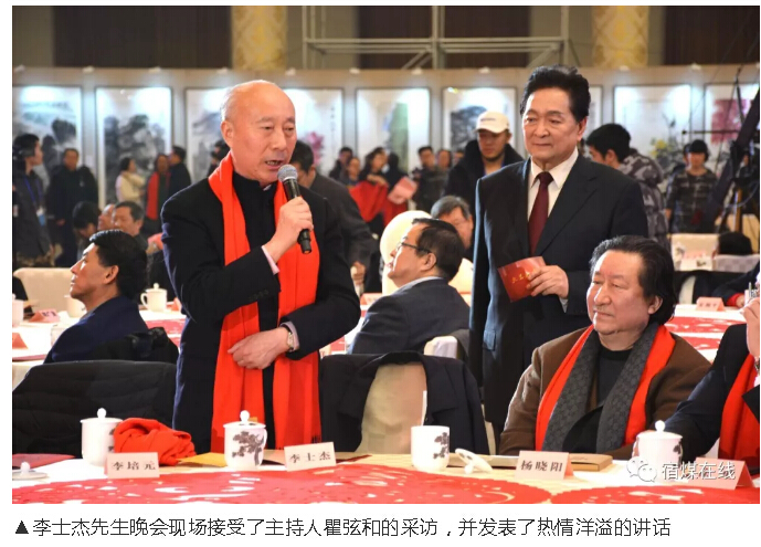 李士杰先生現(xiàn)場接受主持人的采訪,并發(fā)表了熱情洋溢的《人歌新盛世、燕舞好風(fēng)光》的講話。首先代表中國書法大廈全體員工向全國書畫藝術(shù)界的朋友們拜年,同時,向與會代表送上美好的祝福。