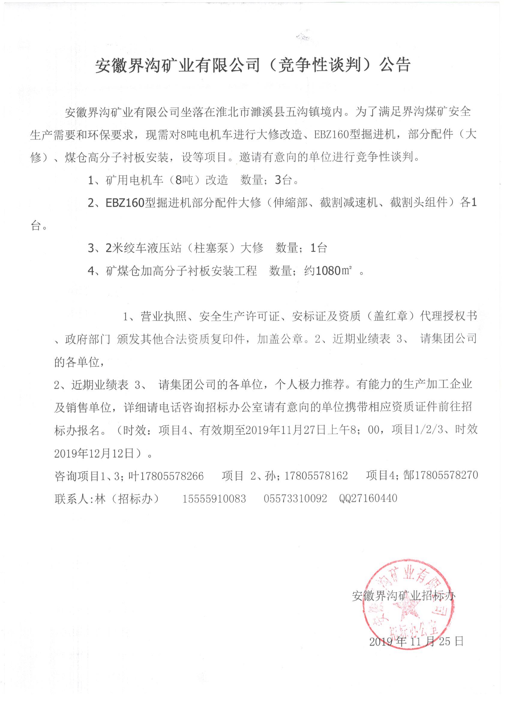 安徽界溝礦業(yè)有限公司(議價)競爭性談判公告