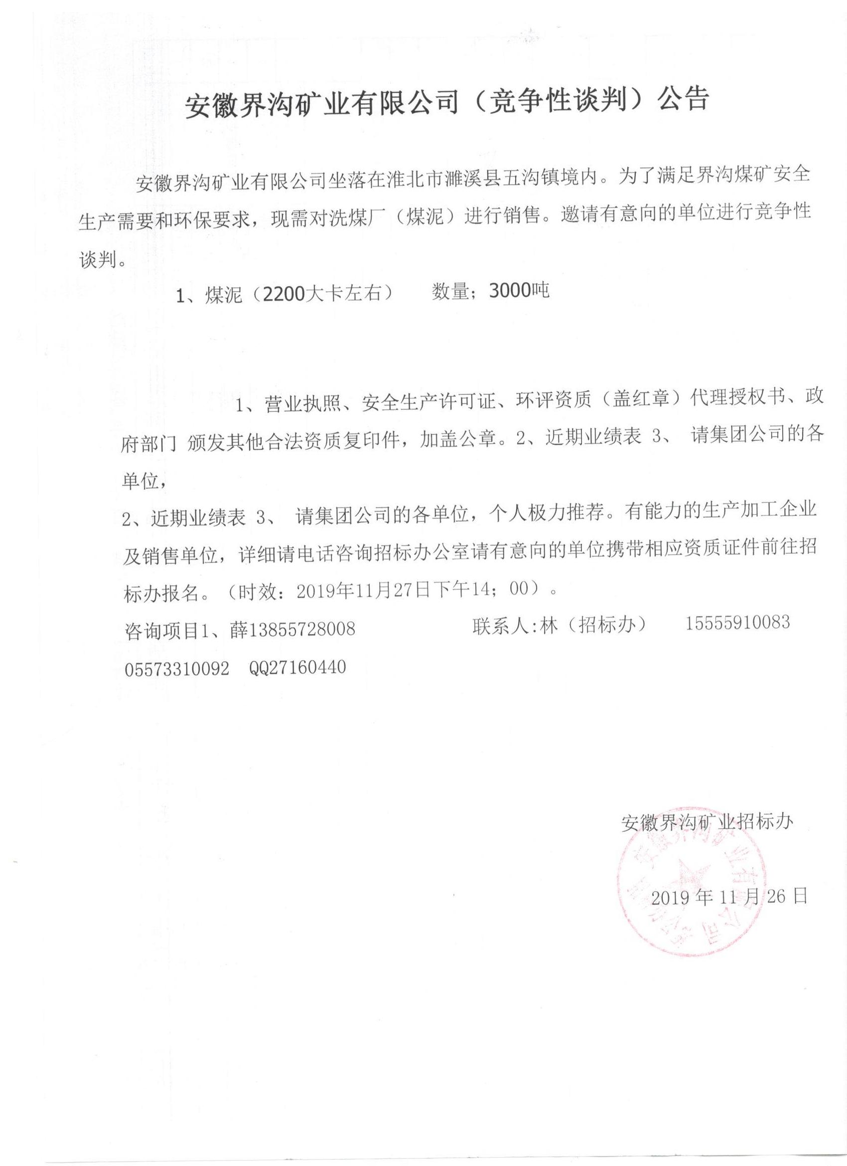 安徽界溝礦業(yè)有限公司(議價(jià))競爭性談判公告