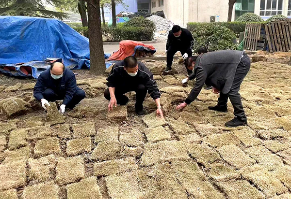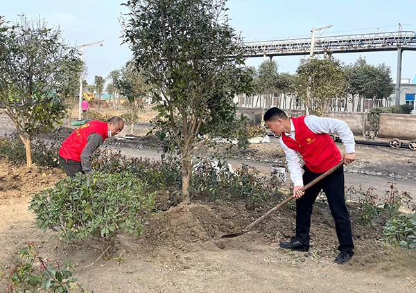 種植現(xiàn)場一派忙碌的勞動(dòng)景象,身著紅馬甲的志愿者們無疑成為一道最為亮麗的風(fēng)景線,只見他們有的揮鍬給樹坑填土,有的用力將填好的土培實(shí),有的把草皮平整鋪好,認(rèn)真細(xì)致做好每道工序,齊心協(xié)力栽種新綠,做到能綠盡綠,見空插綠,大家都為打造綠色界溝礦貢獻(xiàn)一份自己的力量,半天時(shí)間分別種下桂花樹16棵、紅葉石楠3000棵、綠化草皮1300平方米。將一年一度的春季義務(wù)植樹活動(dòng)推向新的高潮。