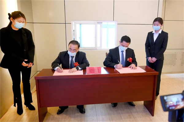 公司生產(chǎn)副總經(jīng)理張清與界溝礦礦長孟海波簽定安全生產(chǎn)管理目標(biāo)責(zé)任書