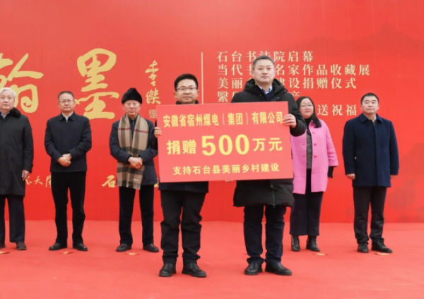 開幕式現(xiàn)場,宿州煤電集團值班總經(jīng)理、黨委副書記房孝虎受李士杰院長的委托,向石臺縣捐贈500萬元專項善款,用于石臺縣的美麗鄉(xiāng)村建設事業(yè)。