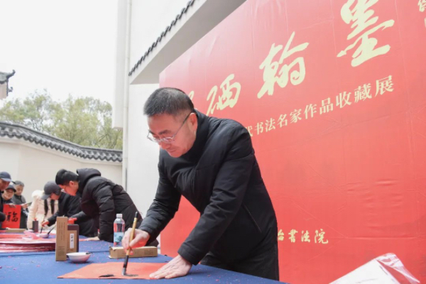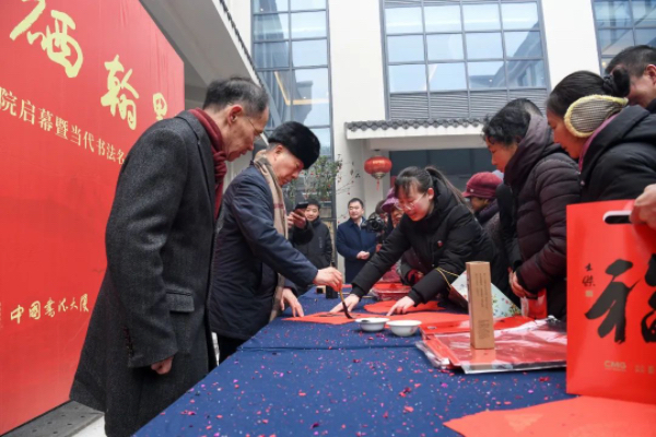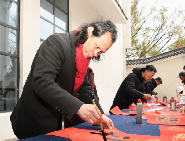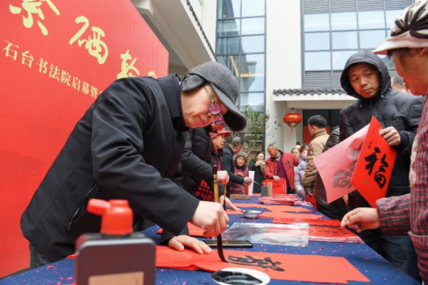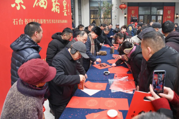 開幕式還特別邀請了石海松、汪國金、徐士彬、歐新中、許春光、蔣奎、呂繼兵等10余位書法家為當?shù)剜l(xiāng)民現(xiàn)場書寫春聯(lián),為即將到來的龍年春節(jié)送上一份誠摯的祝福。