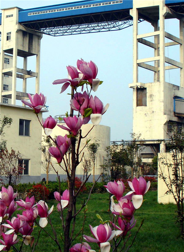 打開心門,去觸摸多情柔美的春天,在這春暖花開的日子里,春天無處不在,不僅在山野田園,名山大川,煤礦也有也有春天呵,當你跨進界溝煤礦大門,展現(xiàn)在我們眼前的是一幅大氣磅礴的當代礦工創(chuàng)作的寫實作品。高大的煤倉,巍巍的井塔,聳立在藍天大地之間,錯略有致的工業(yè)建筑群有藍、紅相間皮帶走廊相連,粉刷一新的各類建筑物點綴其間,掩映在綠樹和鮮花叢中,更加顯得生機昂然。礦內的平安大道橫貫南北,筆直坦蕩,兩旁路燈流光溢彩,成為一道亮麗的風景線;近處大片姿態(tài)各異的樹木、花草、遠物近景把美表現(xiàn)得淋漓盡致、和諧統(tǒng)一。整個主副井工業(yè)區(qū)在碧水的環(huán)繞下形成了一個“三面花香四面柳,湖光碧水潤荷藕”的美麗佳境,不知情的人不會相信這是煤礦。置身其中,你會發(fā)現(xiàn)今天的界溝煤礦清潔怡然、生機勃勃,亭臺樓閣、曲橋假山再現(xiàn)了江南園林的雅致精巧,形成了古今建筑的完美結合,真是美不勝收,令人賞心悅目。體現(xiàn)了現(xiàn)代煤礦豐厚的文化內涵和時尚風情,面對這眼前的一切,作為界溝人無不為之動容和自豪。