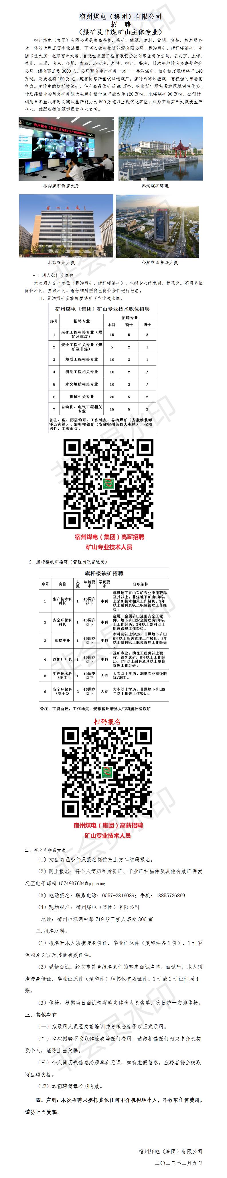 宿州煤電集團(tuán)礦山主體專業(yè)招聘(煤礦及非煤)